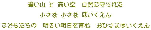 それぞれのご家庭で、いっぱいの愛情を受けながら成長していく子どもたちの姿を、 側で見守り積極的に後押しさせて頂くという思いで保育をすすめております。